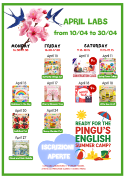 In allegato trovi il calendario completo dei laboratori di aprile, con tutti gli appuntamenti del mese.